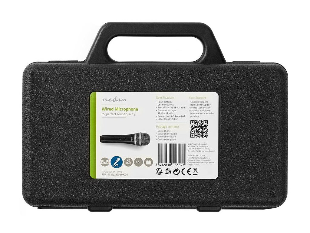 Všestranný mikrofon s kardioidní charakteristikou, odolným kovovým tělem a vynikajícími zvukovými vlastnostmi je ideální pro karaoke. Je vybaven vypínačem a 5 m dlouhým odpojitelným kabelem s konektorem 6,35 mm jack. Součástí balení je přepravní pouzdro pro bezpečné přenášení.