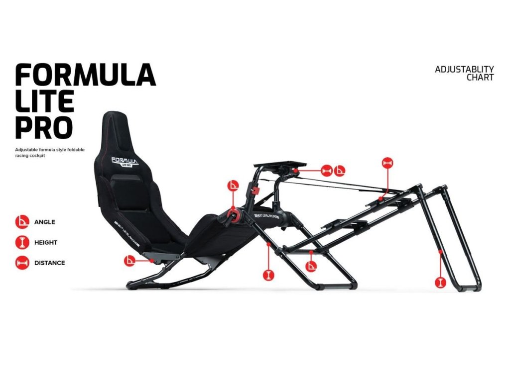 Formula Lite Pro se může pochlubit několika body nastavení bez použití nářadí, což vám umožňuje snadno nastavit kokpit do opravdové pozice formule.