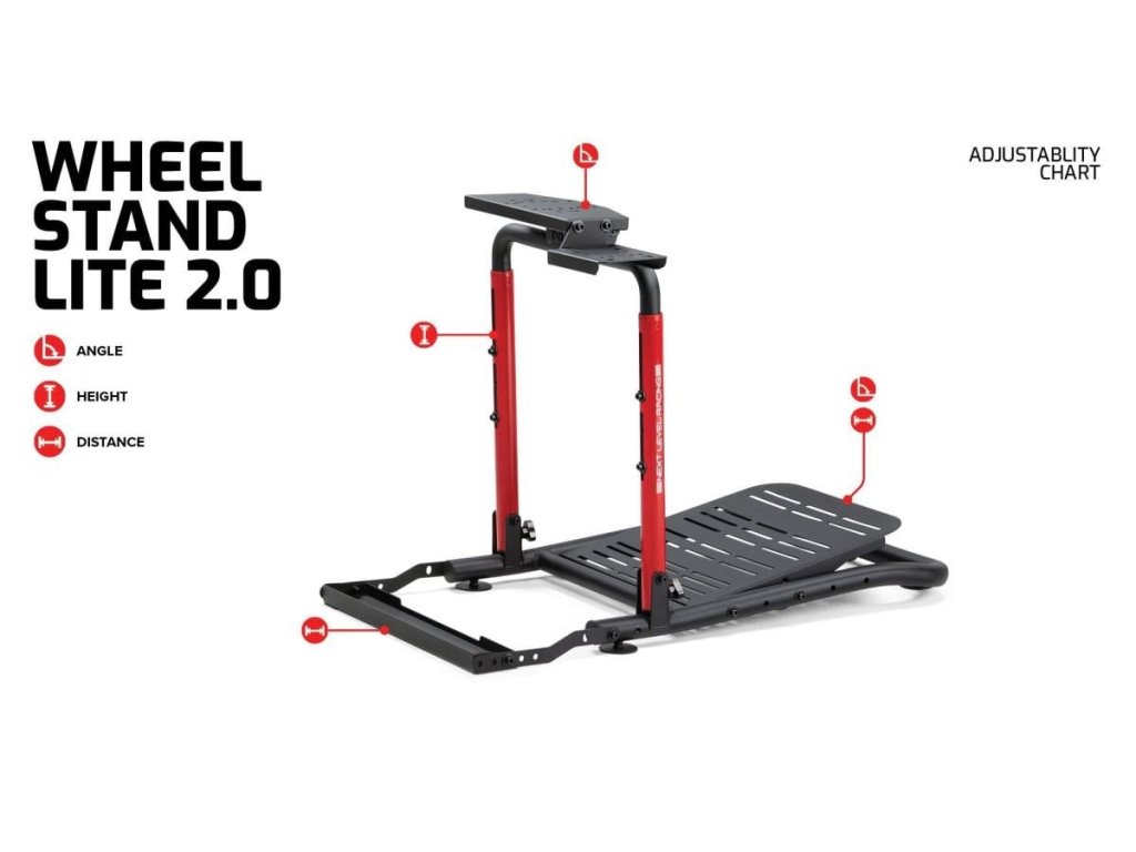 Next Level Racing® Wheel Stand Lite 2.0 poskytuje skvělou stabilitu a nabízí rozsáhlé možnosti nastavení, včetně výšky, vzdálenosti a úhlu, což umožňuje každému závodníkovi přizpůsobit si ho podle svých potřeb.