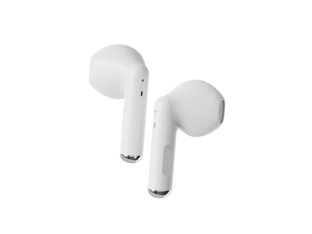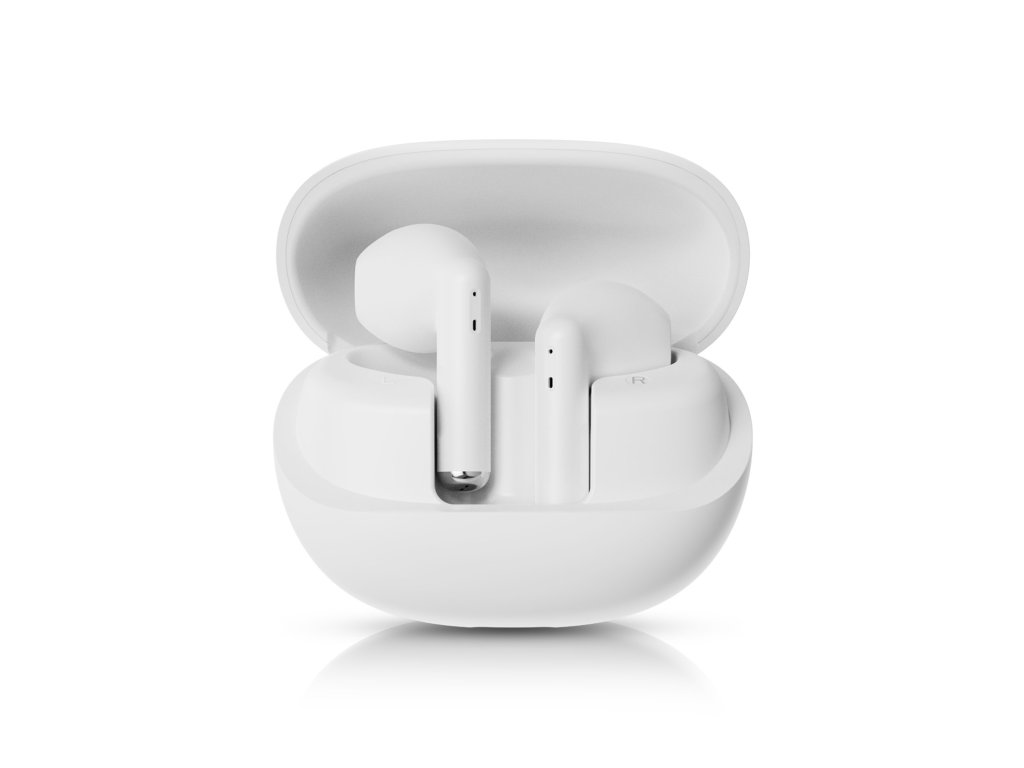 Bezdrátová True Wireless (TWS) sluchátka, Bluetooth 5.4, frekvenční rozsah 20Hz-20kHz, poslech hudby výdrž baterie až 24 hodin, odolnost IPX4, bílá