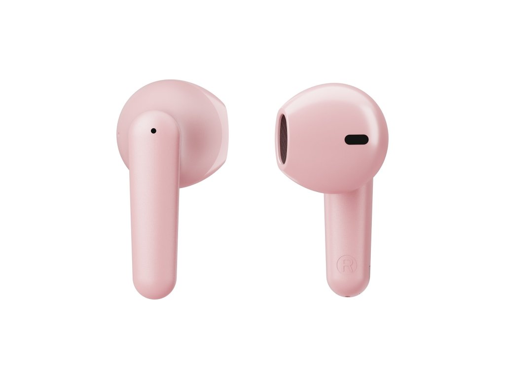 Bezdrátová True Wireless (TWS) sluchátka, Bluetooth 5.4, frekvenční rozsah 20Hz-20kHz, výdrž baterie až 20 hodin, odolnost IPX4, růžová
