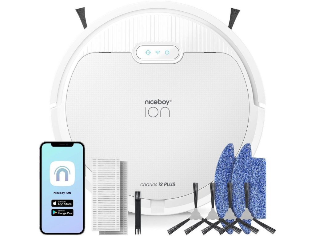 Robotický vysavač s mopem - pro alergiky a na zvířecí chlupy, na všechny druhy podlah, na vysávání, suché čištění, HEPA H13 filtr, indikátor nabíjení, ovládání mobilní aplikací, na těle, plastová sběrná nádoba o objemu 0,4 l, gyroskopická navigace.