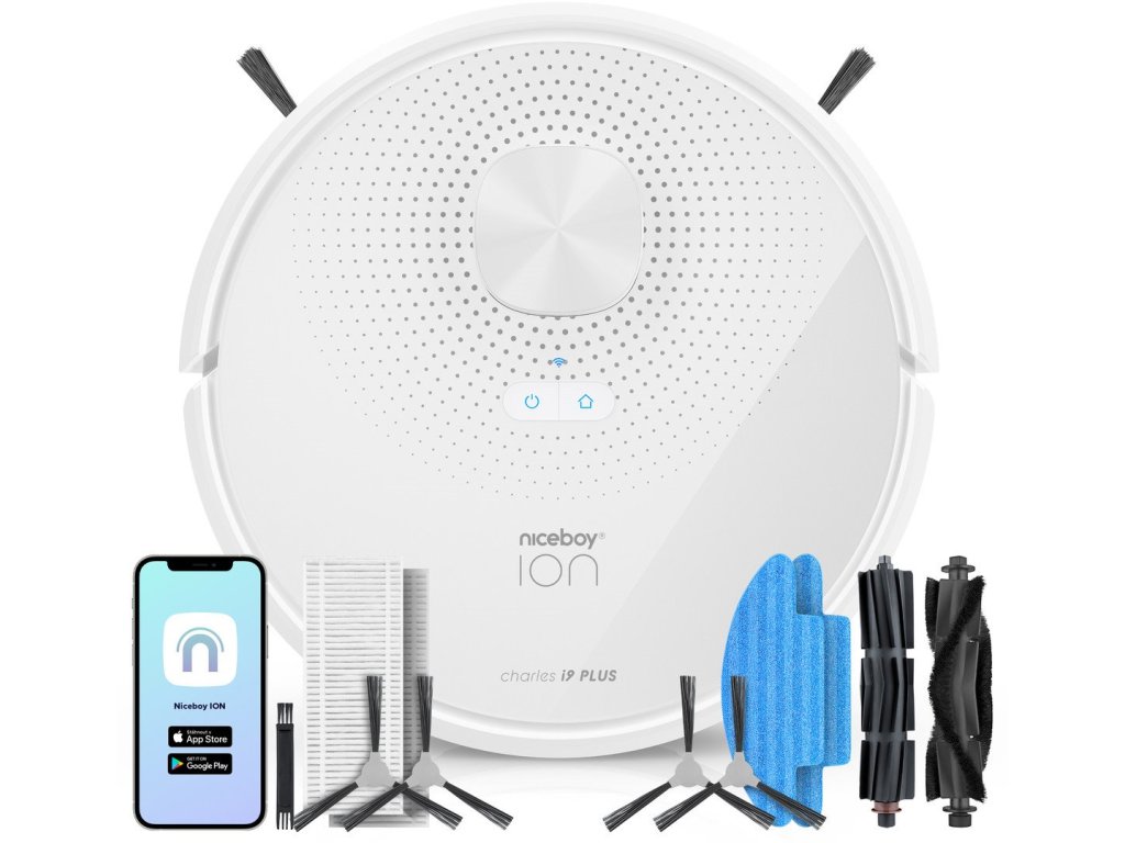 Robotický vysavač Charles i9 Plus - Výkon 42 W, Sací výkon 2500 Pa, prachová nádoba 240 ml, nádobka na vodu 250 ml, Doba vysávání 120 minut, Doba nabíjení 300 minut, zdolá překážky do výše 2cm, účinnost filtru 99,97%! navigační technologie LIDAR