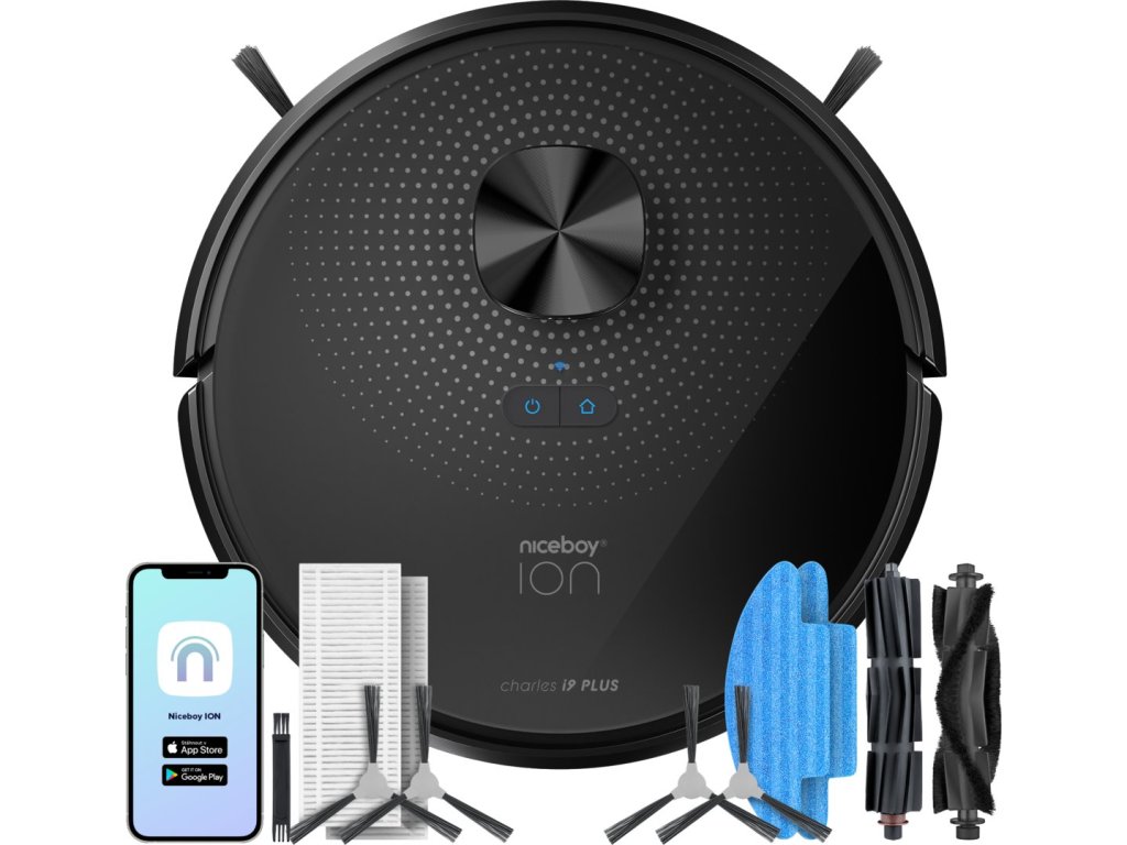 Robotický vysavač Charles i9 Plus - Výkon 42 W, Sací výkon 2500 Pa, prachová nádoba 240 ml, nádobka na vodu 250 ml, Doba vysávání 120 minut, Doba nabíjení 300 minut, zdolá překážky do výše 2cm, účinnost filtru 99,97%! navigační technologie LIDAR
