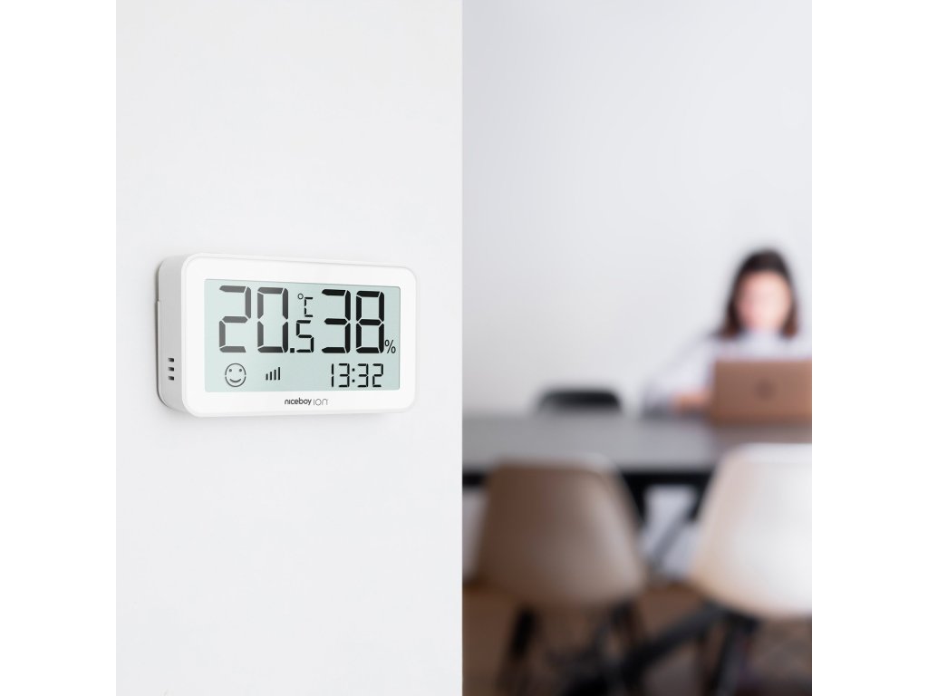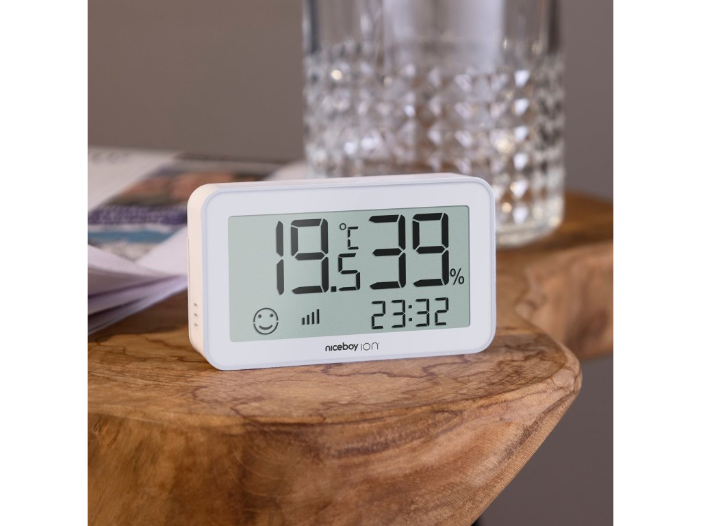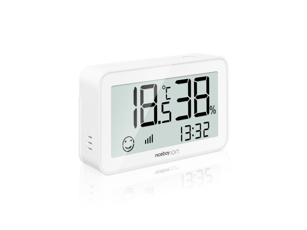 Vnitřní senzor teploty a vlhkosti, s displejem. Práce s aplikací Niceboy ION. Vyžaduje centrální jednotku Niceboy ORBIS Bridge. 2x AAA baterie (nejsou součástí balení)