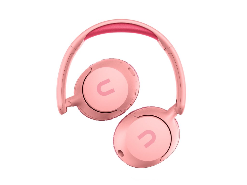 Bezdrátová sluchátka pro děti, přes hlavu, skládací, výdrž až 60 hodin, BT 6.0, Multipoint, Sound Share, chytré ovládání hlasitosti, růžová