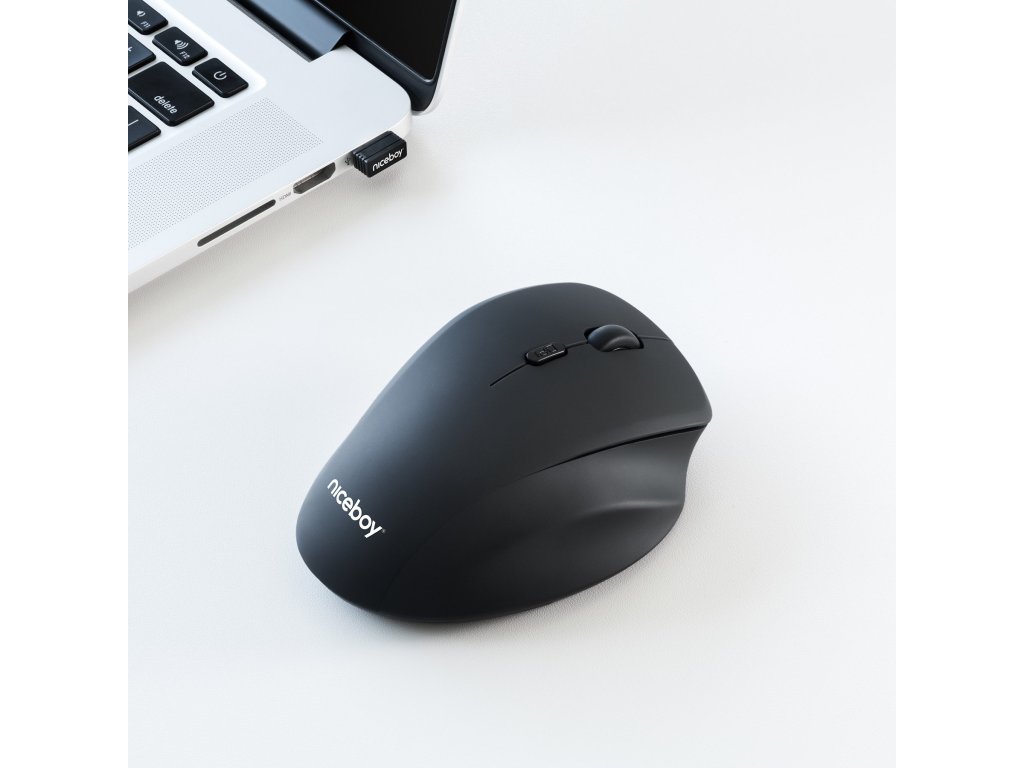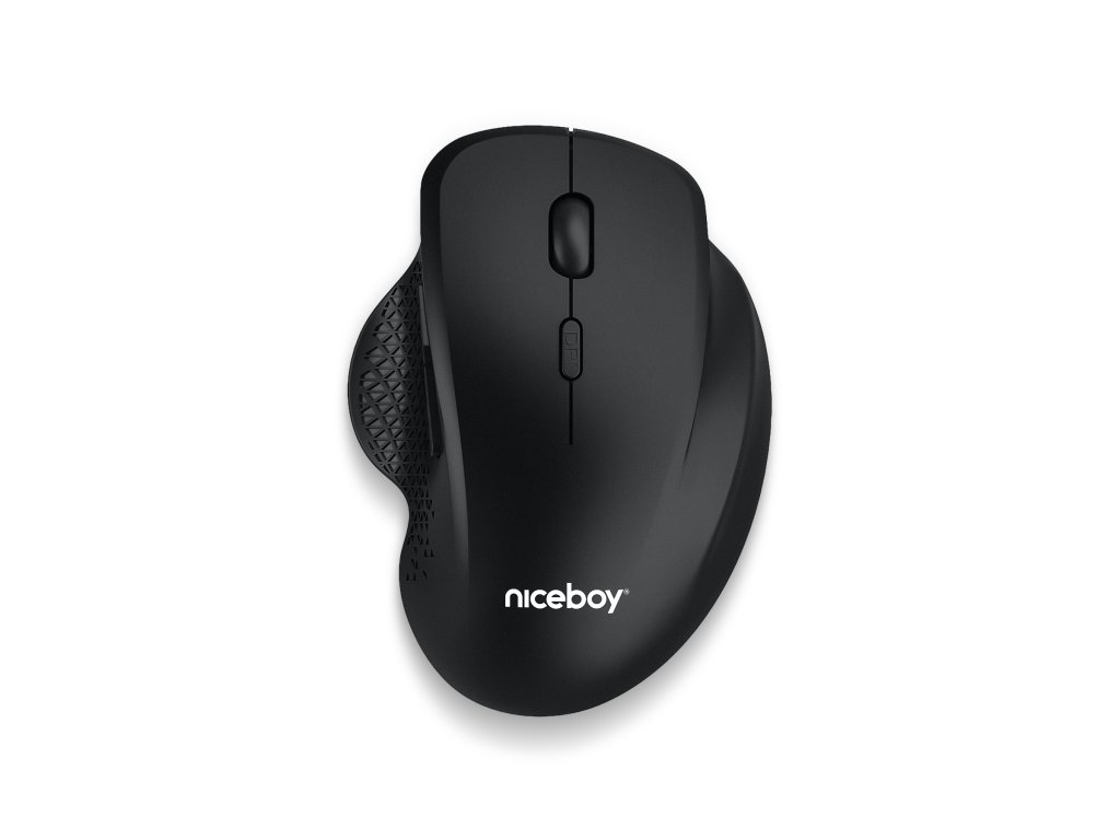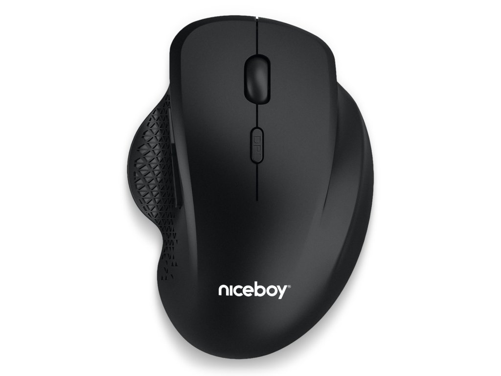 Niceboy M20, bezdrátová optická myš, ergonomická, USB, rozlišení 1600dpi, 6 tlačítek, výdrž 1 měsíc