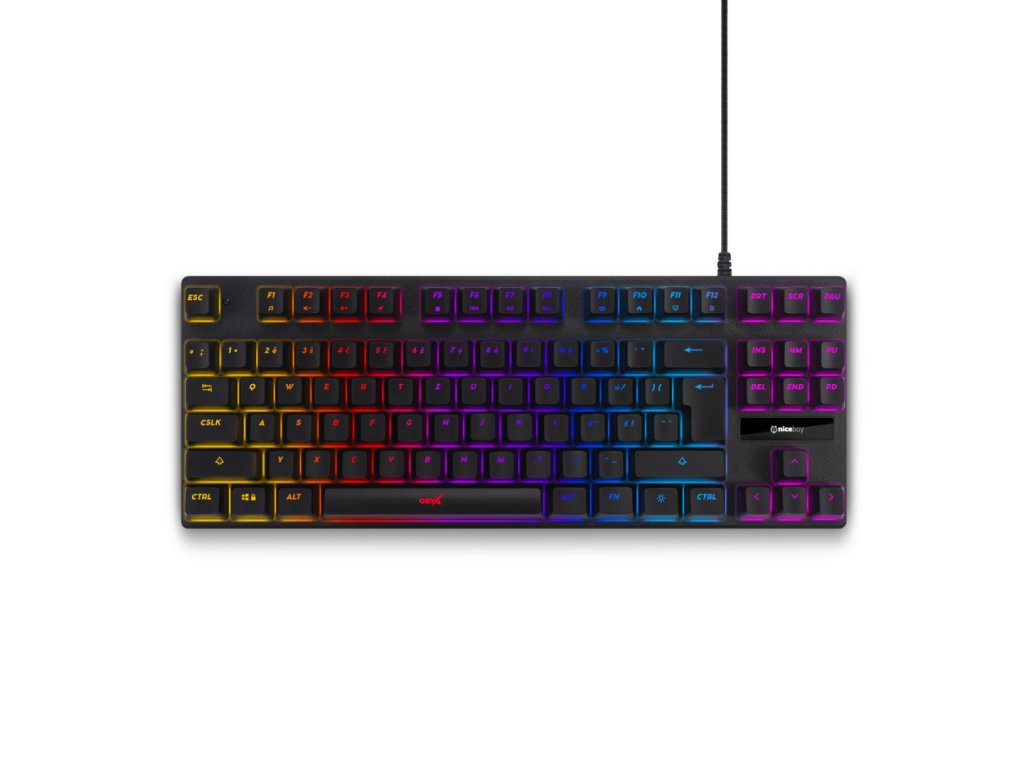 Niceboy ORYX K300X, kvalitní drátová mechanická klávesnice, kompaktní rozměr bez numerické části, nastavitelné RGB podsvícení, anti-ghosting pro 26 nejpoužívanějších kláves, USB, česká lokalizace