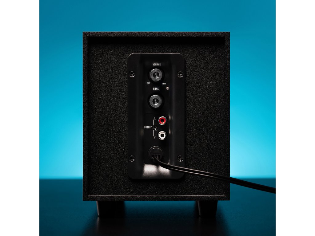 Díky rychlému a jednoduchému Plug & Play připojení můžete sadu reproduktorů ORYX VOX 2.1 propojit během okamžiku nejen s počítačem či notebookem, ale i herními konzolemi. Je to snadné, stačí jen zapojit satelitní reproduktory do subwooferu a ten následně propojit s vaším zařízením s 3,5 mm konektorem skrze přiložený audiokabel.
