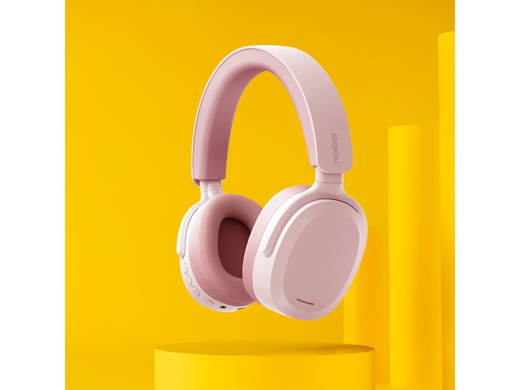 Bezdrátová sluchátka, přes hlavu, Bluetooth 5.3, frekvenční rozsah 20Hz-20kHz, výdrž baterie až 30 hodin, odolnost IPX4, růžová