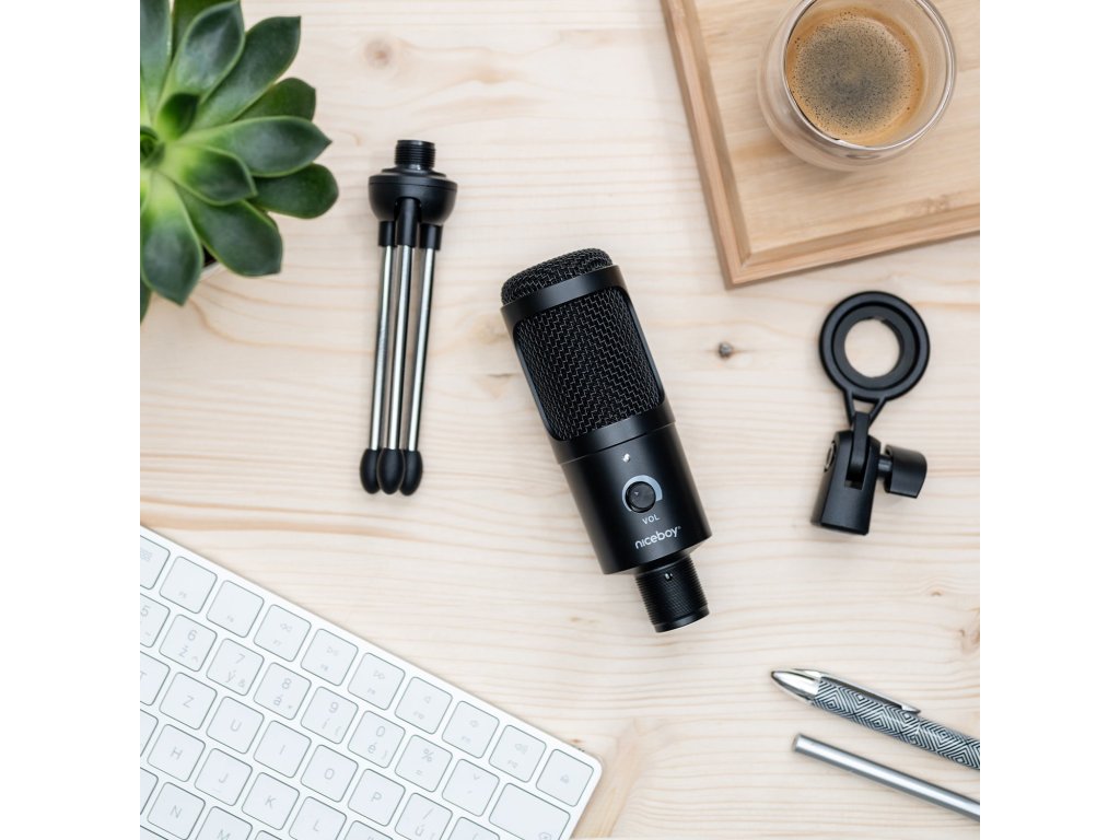 Niceboy VOICE, stolní kondenzátorový mikrofon, připojení pomocí USB, kabel 1,4 m