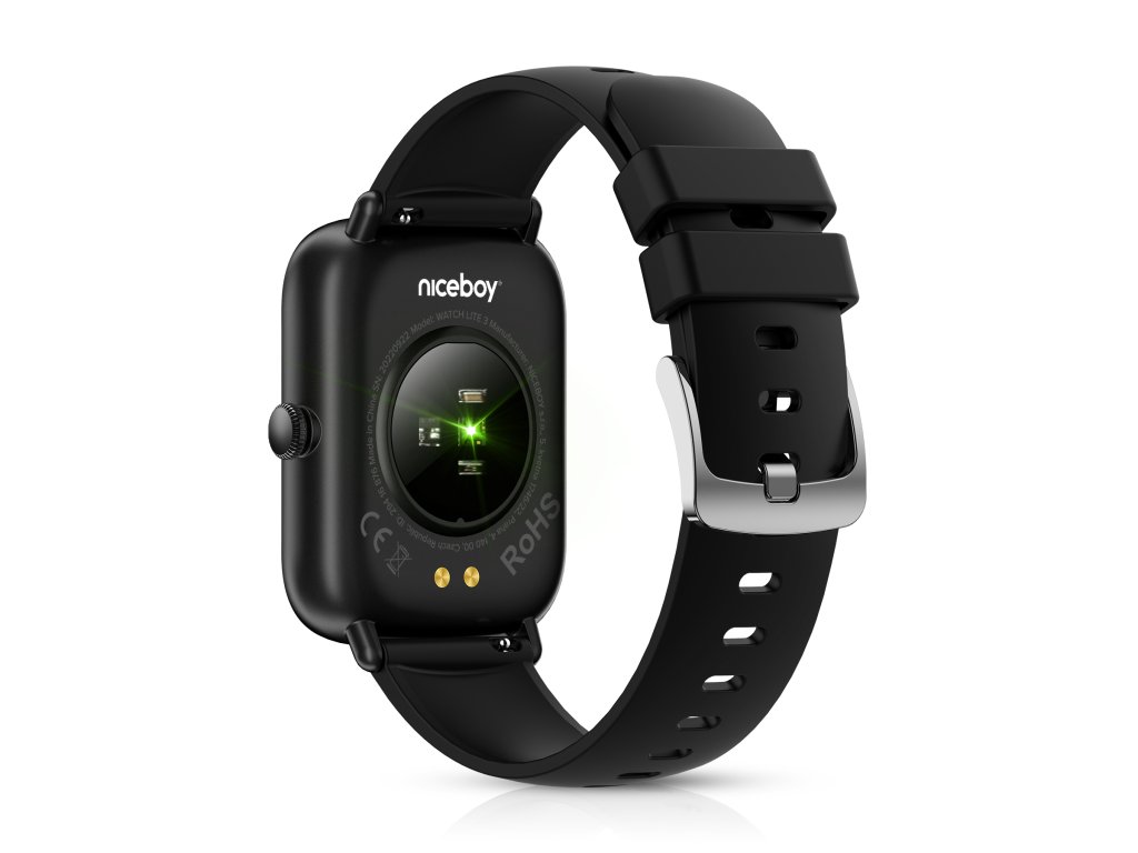 Niceboy Watch Lite 3, stylové hodinky do města, plně dotykový displej s velikostí 1,69 palců, vodotěsné a prachuodolné (stupeň krytí IP68), výdrž až 7 dní, měření srdečního tepu, okysličení krve a krevního tlaku
