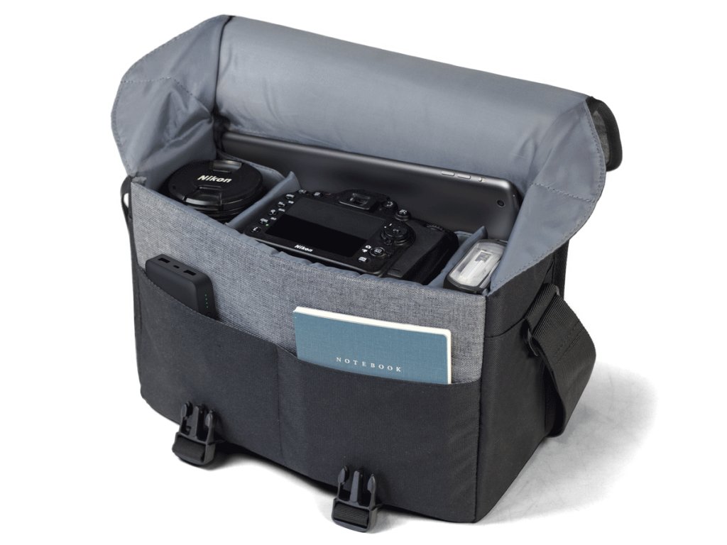 Brašna ve stylu Messenger kompatibilní se specifickými fotoaparáty Nikon.