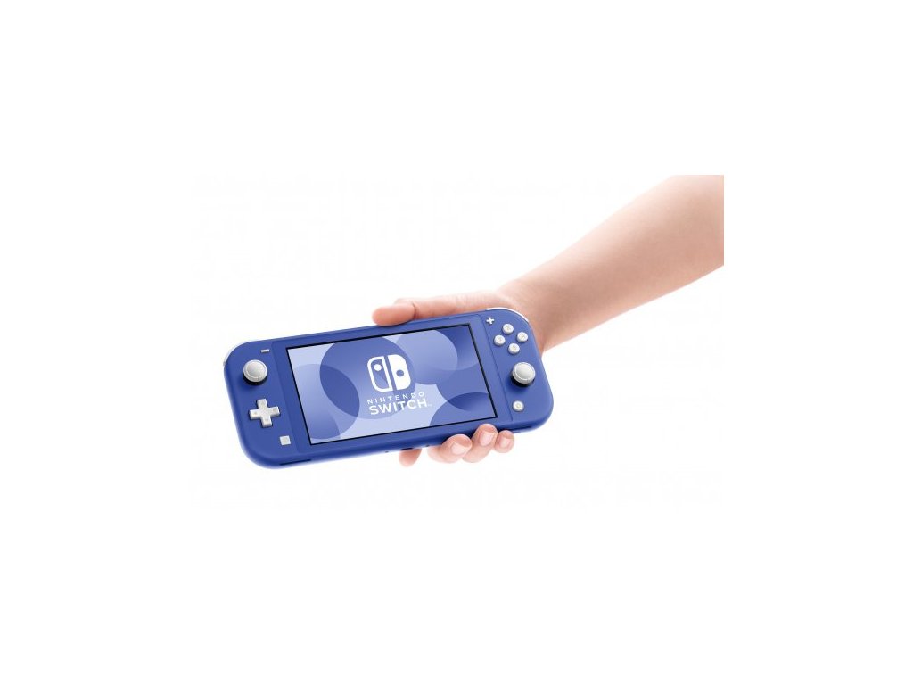 Herní konzole Nintendo Switch Lite, zaměřená na hraní v Handheld módu - Nintendo Switch Lite je kompaktním, lehčím přírůstkem do rodiny Nintendo Switch se zabudovaným ovládáním. Barva modrá.