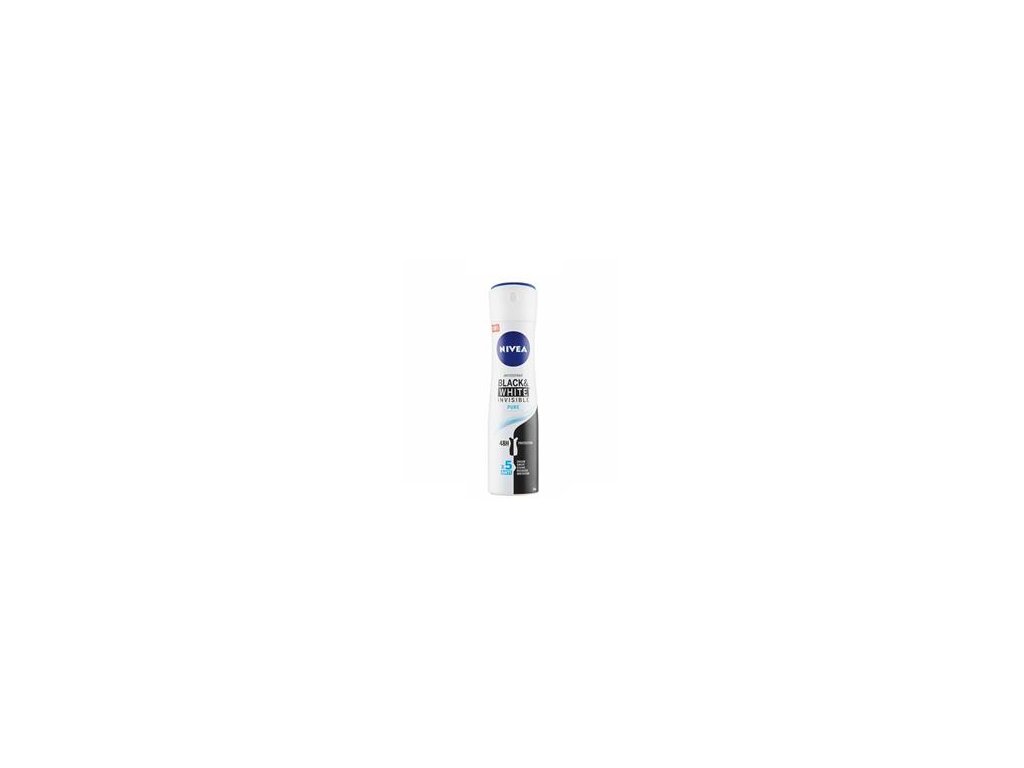 Poznejte skutečně účinný antiperspirant Nivea Invisible Black & White Pure se svěží lehkou vůní, který chrání proti pocení i zápachu a zároveň chrání i vaše oblečení. Unikátní patentovaná technologie zabraňuje vzniku bílých stop na černém oblečení a pomáhá předcházet vzniku žlutých skvrn, které se mohou časem objevit na bílém oblečení.