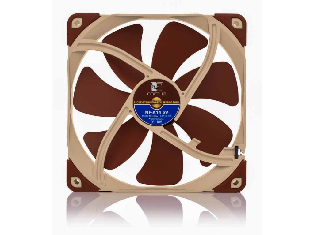 S integrovanými anti-vibračními podložkami z extra-měkkého silikonu lze ventilátor NF-A14 snadno namontovat na standardní šrouby a další montážní systémy. S kompletním balením, které zahrnuje i prodlužovací kabel, adaptér a 6letou záruku od výrobce, je NF-A14 5V připraven splnit nároky náročných aplikací vyžadujících napětí 5V.