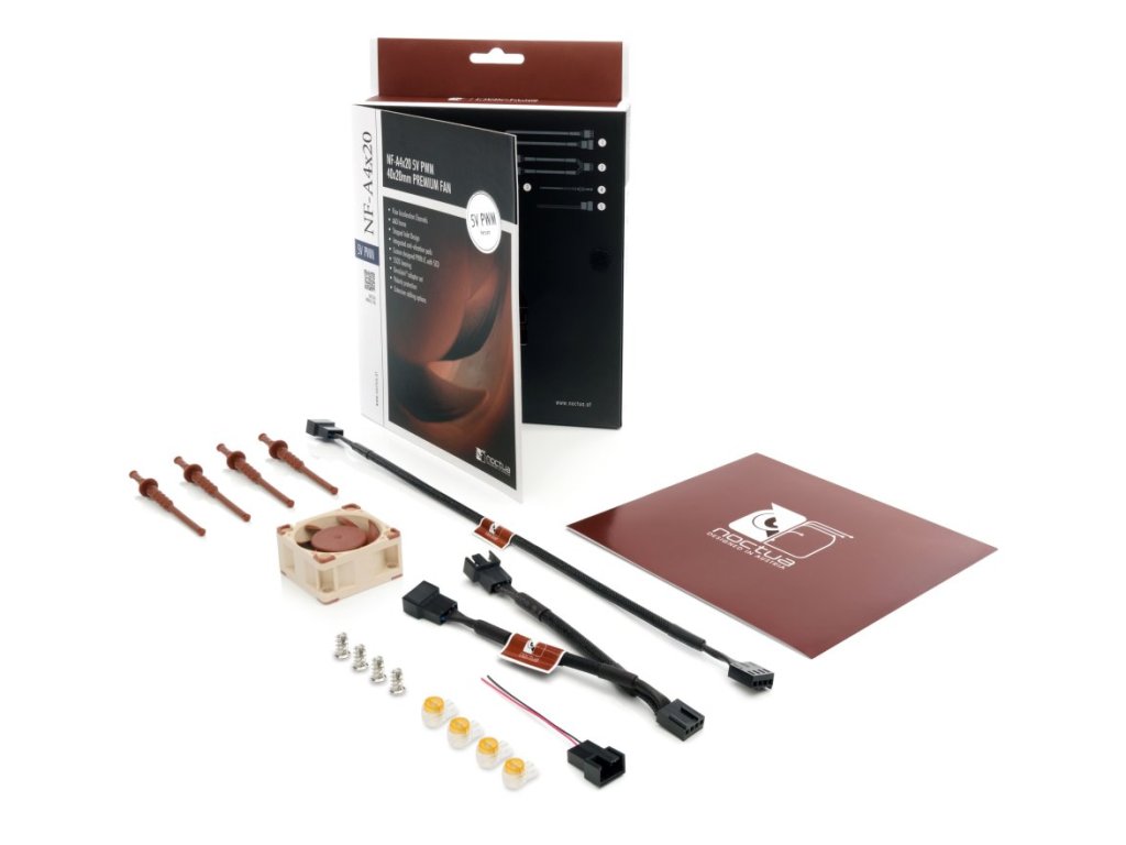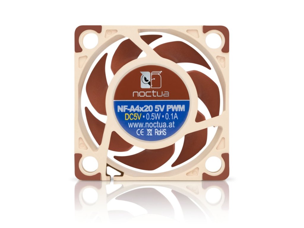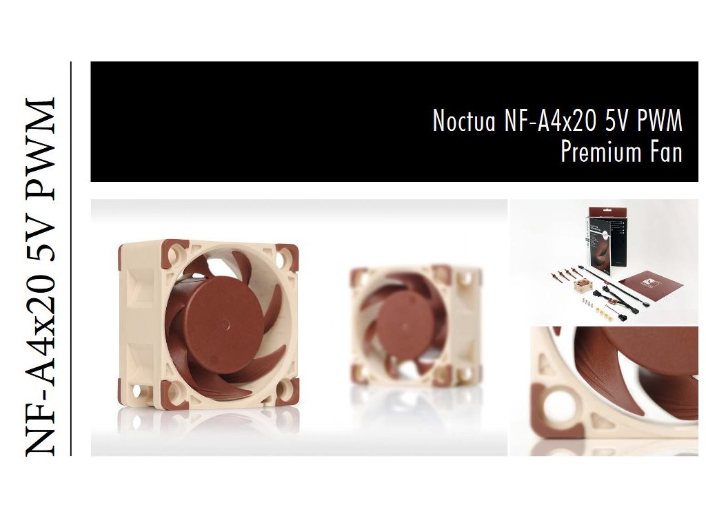ventilátor, tichý, jen pro 5V napájení, rozměry 40x40x20mm, hlučnost 14.9dB, průtok 9.4m3/h, 4pin PWM, 5000 otáček, AAO, SSO2, 20cm + 30cm NA-EC1 kabel