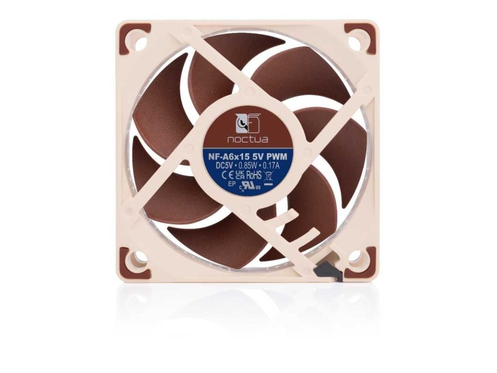 Noctua NF-A6x15 5V PWM je vysoce kvalitní ventilátor o velikosti 60x15 mm, navržený pro specifické 5V aplikace s možností automatické PWM regulace otáček. Díky špičkovému čipu NE-FD3 5V PWM s technologií Smooth Commutation Drive zajišťuje hladký a tichý chod s eliminací přepínacích zvuků při nízkých otáčkách, až do maximálních 3500 RPM. Technologie Flow Acceleration Channels a AAO rám s anti-vibračními podložkami zvyšují efektivitu proudění vzduchu a snižují hluk.