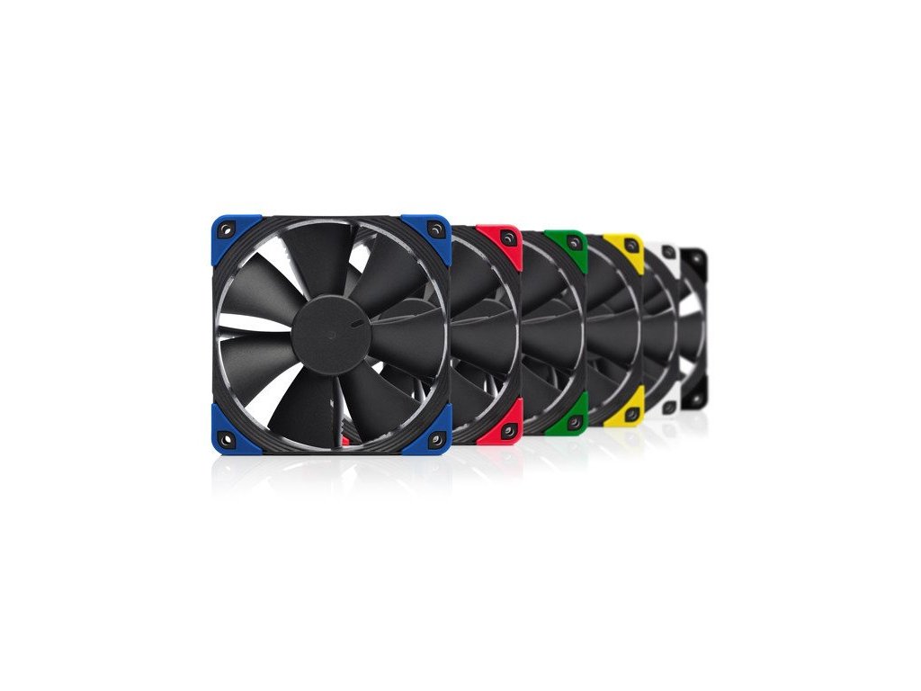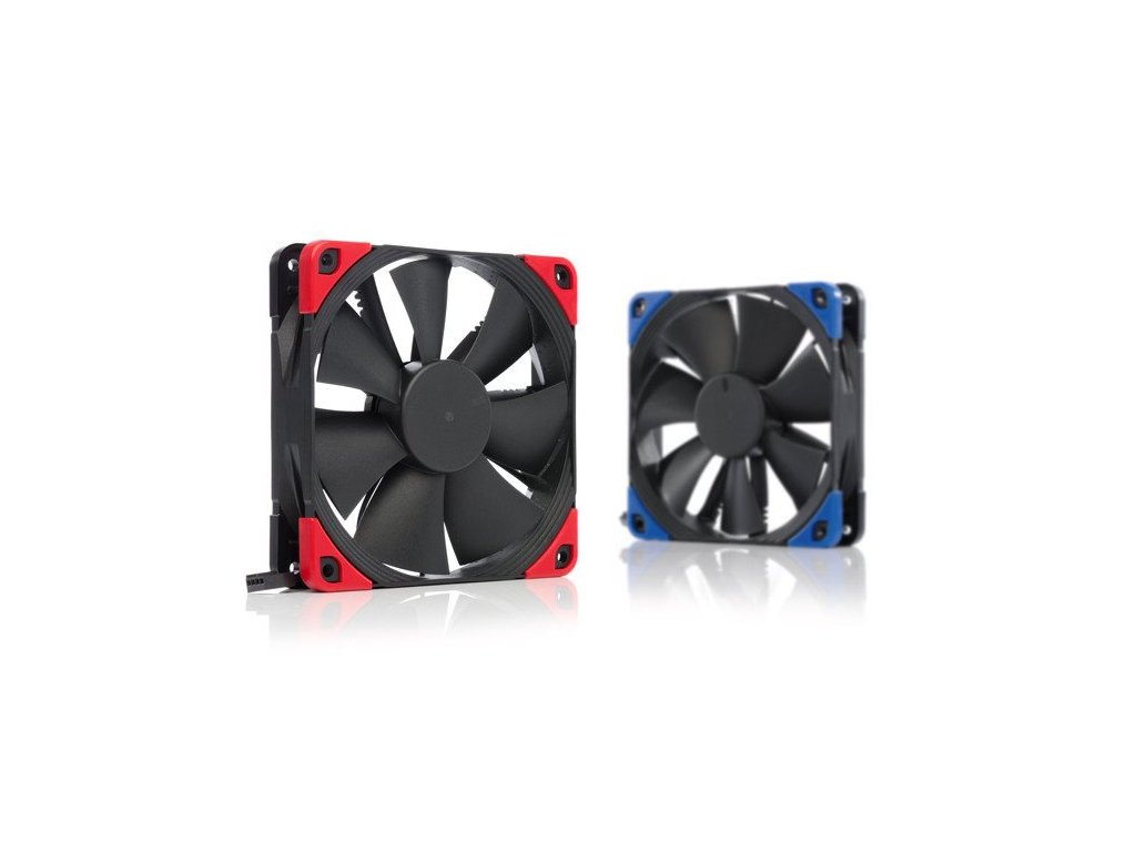 ventilátor, tichý, rozměry 120x120x25mm, hlučnost 18.6 až 22.4dB, průtok 74.3 až 93.4 m3/h, 300 až 1500 otáček, optimalizovaná geometrie a povrch 7 lopatek, SSO2, edice Chromax - vyměnitelné barevné antivibrační podložky