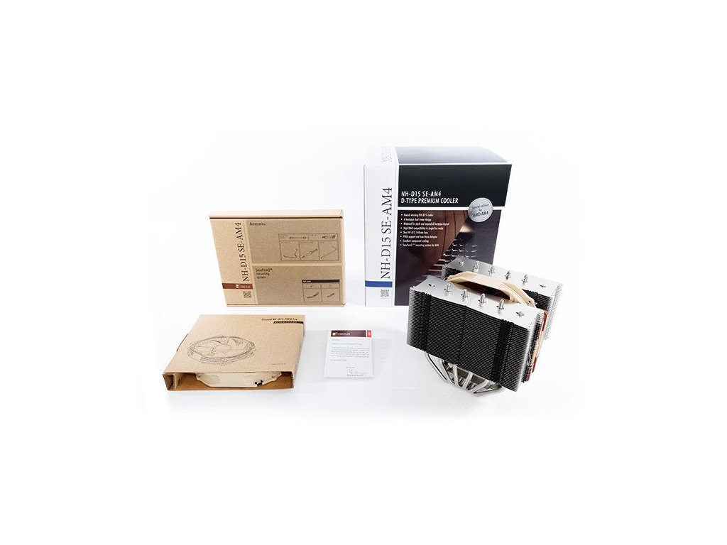 Chladič NH-D15 je vlajková loď rakouského výrobce Noctua. Verze NH-D15 SE-AM4 je připravena pro socket AMD AM4. Součásti jsou špičkové a ultratiché větráčky Noctua NF-A15 PWM.
