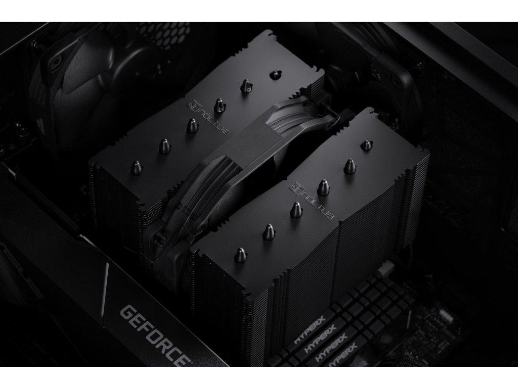 chladič procesoru, socket Intel LGA2011(-3), 1200, 1155, 1151, 1150, 1200, 1700, AMD AM4, AM5, rozměry bez ventilátoru 160x150x135mm, hmotnost 980/1150g, součástí balení ventilátor Noctua NF-A15 PWM a adaptér L.N.A., černý
