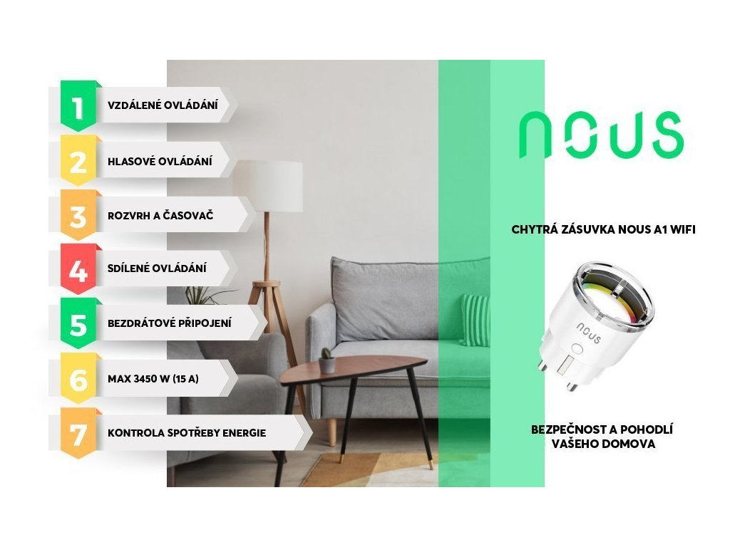 Chytrá zásuvka Nous A1 umožňuje vytvářet rozvrhy pro připojená elektrická zařízení na základě vašich denních zvyklostí. Zapínáním a vypínáním zařízení v naplánovaný čas lze také ušetřit energii a čas. Probuďte se s horkou kávou nebo naplánujte zásuvku, aby zapnula zvlhčovač vzduchu. Spousta pohodlí pro vás i vaši rodinu.