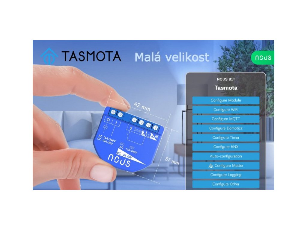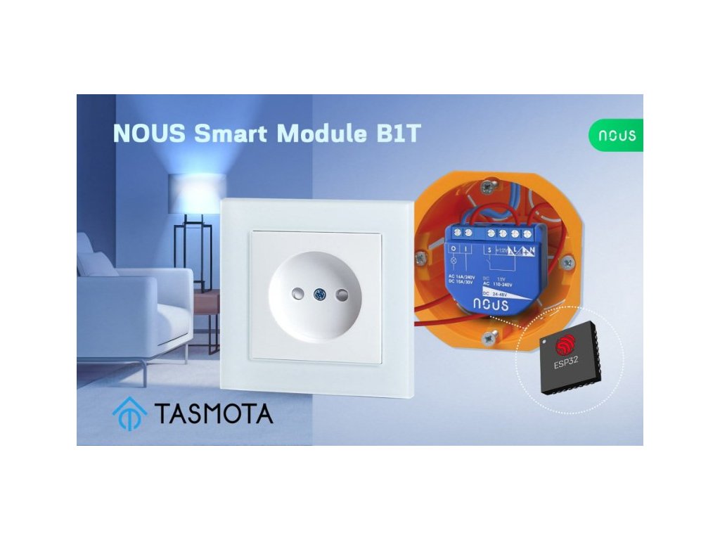 Chytrý vypínač NOUS B1T s nainstalovaným otevřeným softwarem Tasmota (dále jen vypínač) je určen k organizování automatického a ručního vypínání elektrických spotřebičů v místnosti prostřednictvím vzdáleného přístupu přes Wi-Fi síť, pomocí chytrého telefonu nebo z osobního počítače přes webového rozhraní. Komunikace s přepínačem se konfiguruje přes Wi-Fi síť, k čemuž slouží bezdrátový Wi-Fi adaptér. Vypínač je vybaven mechanickým tlačítkem a světelnou indikací stavu zařízení. Zařízení je vybaveno elektromechanickým relé a podporuje protokol Matter .