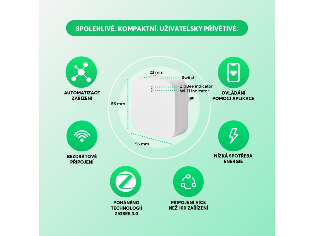 Chytrá centrální jednotka, až 100 zařízení, protokol ZigBee, vysoká kompatibilita s ostatními ZigBee produkty