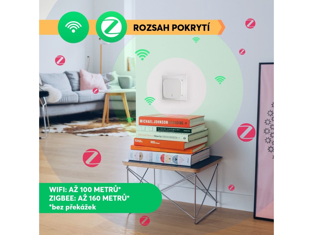Provozní rozsah: Wi-Fi: max. 100 metrů (volný prostor), ZigBee: max. 160 metrů (volný prostor)