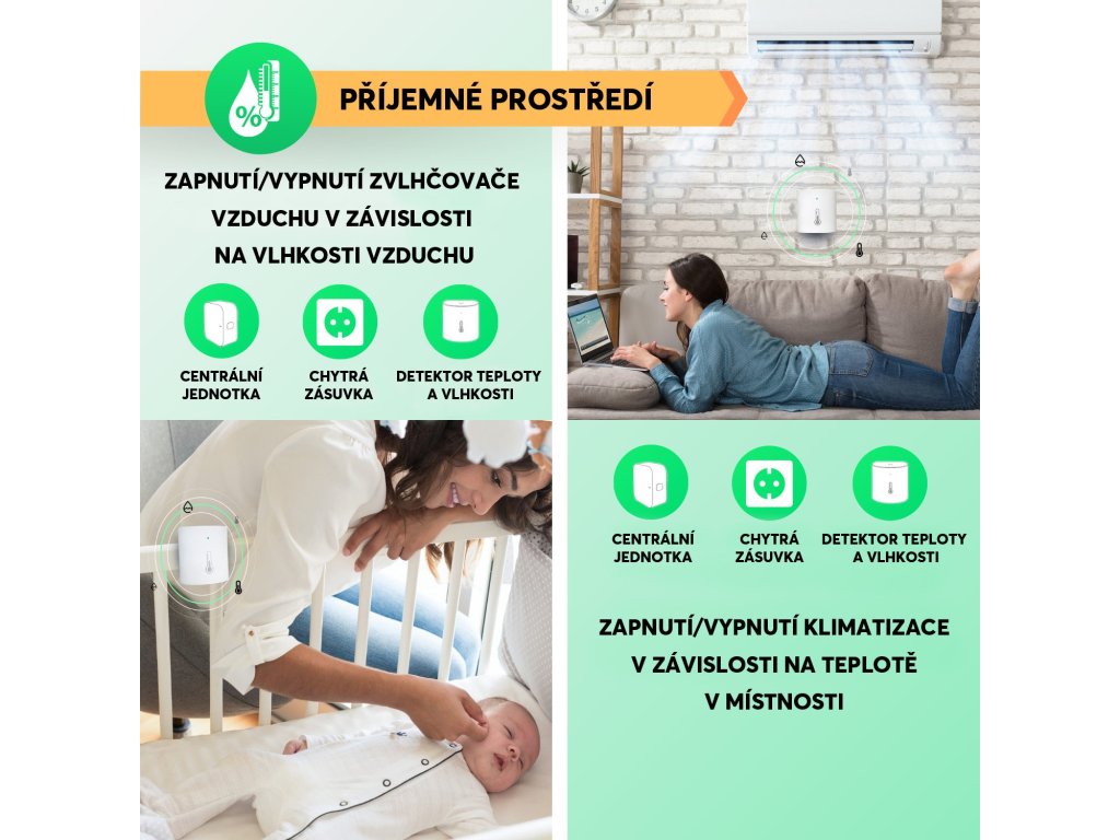 Na základě měření senzorů můžete snadno nastavit automatizaci procesů (například zapnutí klimatizace nebo vytápění).