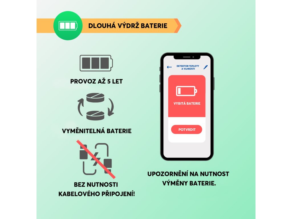•Senzor umožňuje měřit aktuální teplotu a vlhkost.