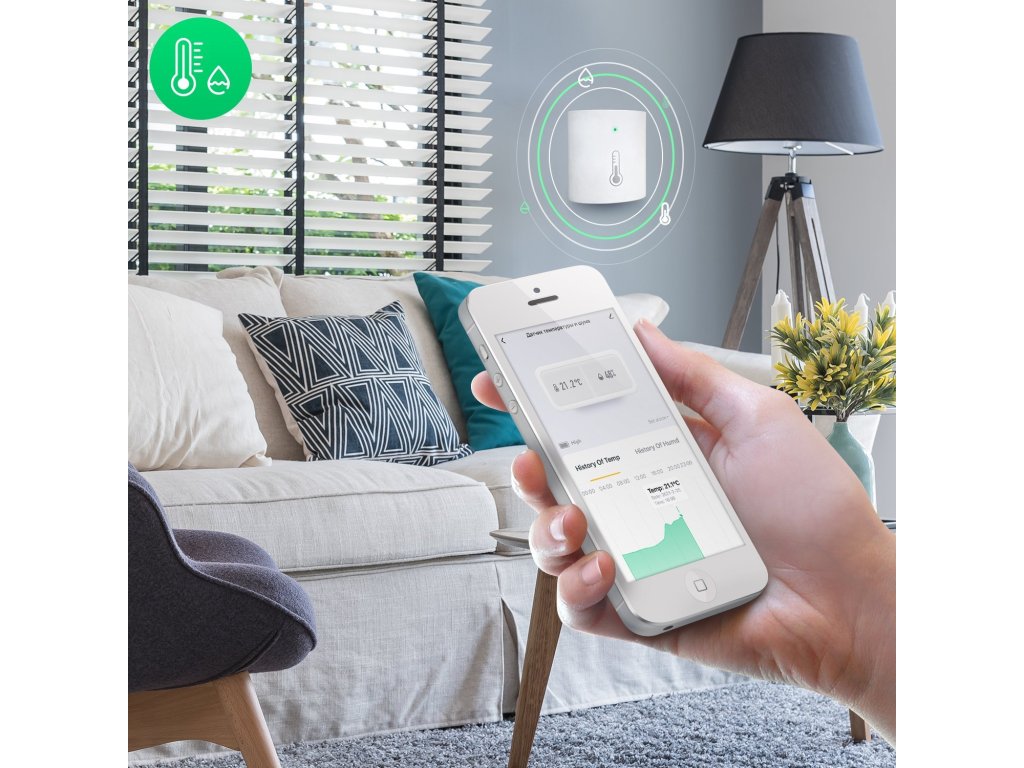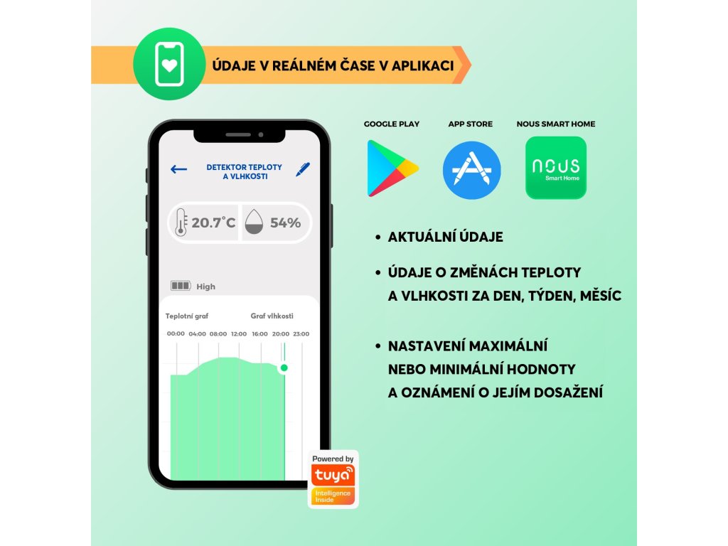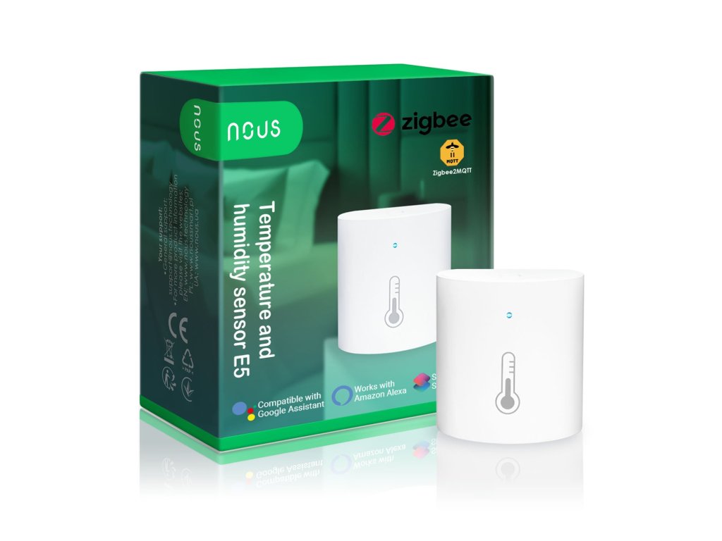 NOUS E5 je ZigBee čidlo určené ke sledování změn teploty a vlhkosti ve vaší domácnosti, přičemž všechny naměřené hodnoty lze v reálném čase kontrolovat v aplikaci NOUS SMART HOME.