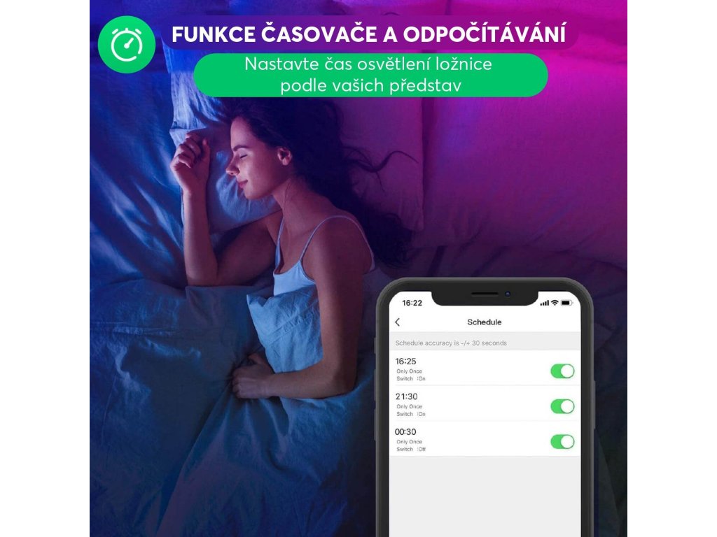 Barevné osvětlení vytvoří atmosféru vašeho pokoje. Použití flexibilních WiFi LED pásků se v moderním designu osvětlení celosvětově rychle rozšiřuje díky rostoucí účinnosti, možnostem barev, jasu a snadné instalaci. Je to nová a všestranná forma osvětlení. Začněte navrhovat svůj domov s tímto chytrým LED páskem.