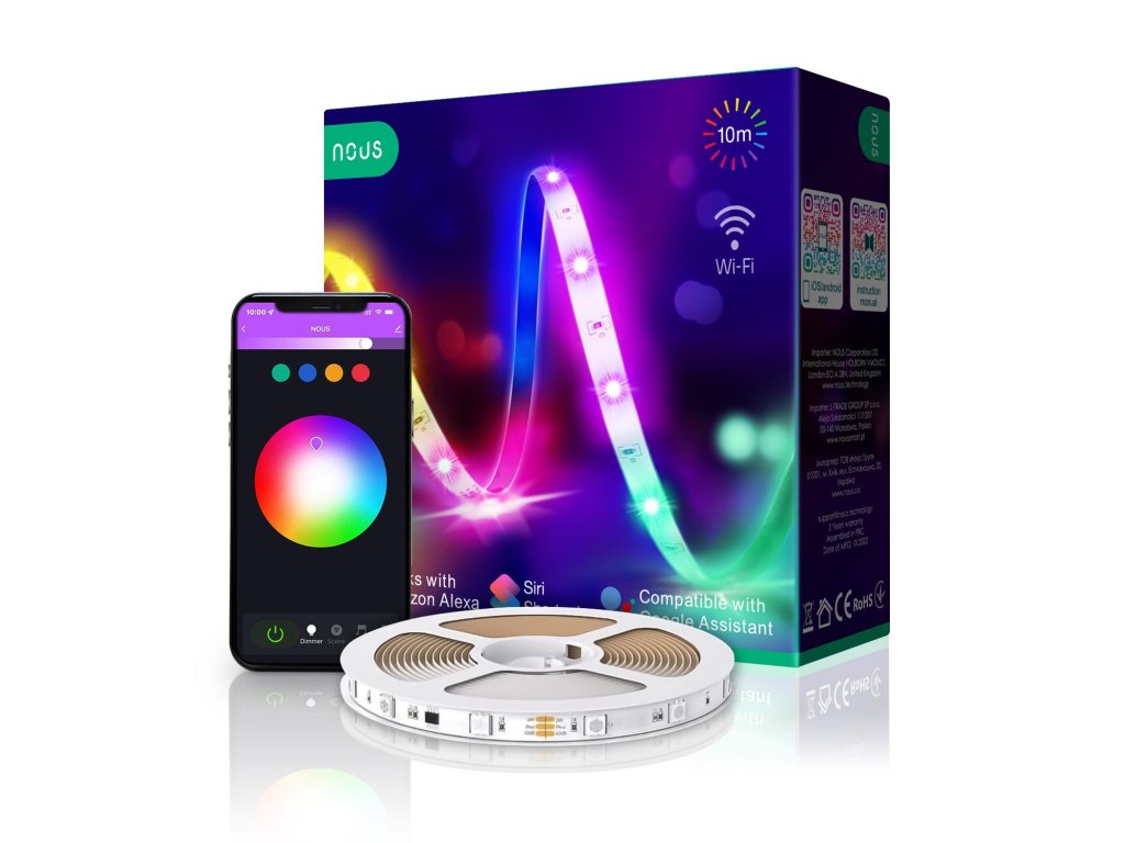 Pomocí aplikace Nous Smart Home můžete ovládat barvy, jas a RGB scénář. Také můžete naplánovat zapnutí nebo vypnutí pásku. To vše můžete provést odkudkoli na světě.