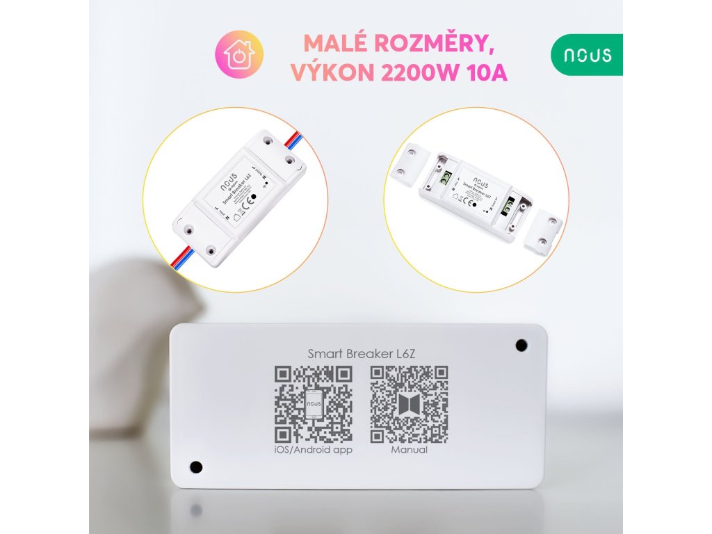 Chytrý ZigBee spínač, pro použití s centrální jednotkou, maximální výkon 2200 W (10 A), rozsah provozního napětí 90-250V, aplikace Nous Smart Home / Tuya Smart pro Android/iOS, spolupracuje se službami Google Home a Amazon Alexa