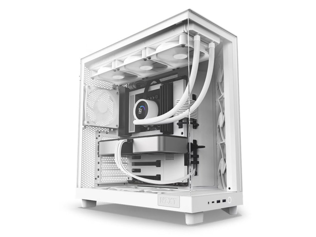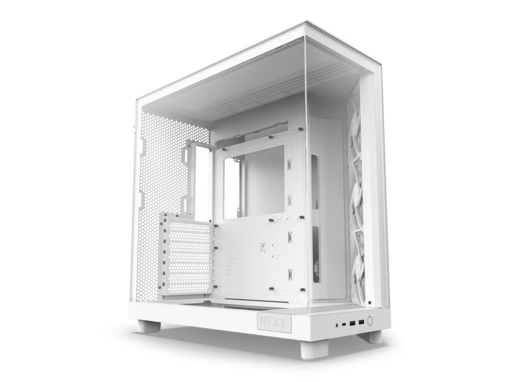 Skříň, Middle tower, bez zdroje, ATX, 1× USB-C, 2× USB 3.0, 3× 120mm ventilátor, průhledná bočnice a čelo, perforovaný panel, bílá