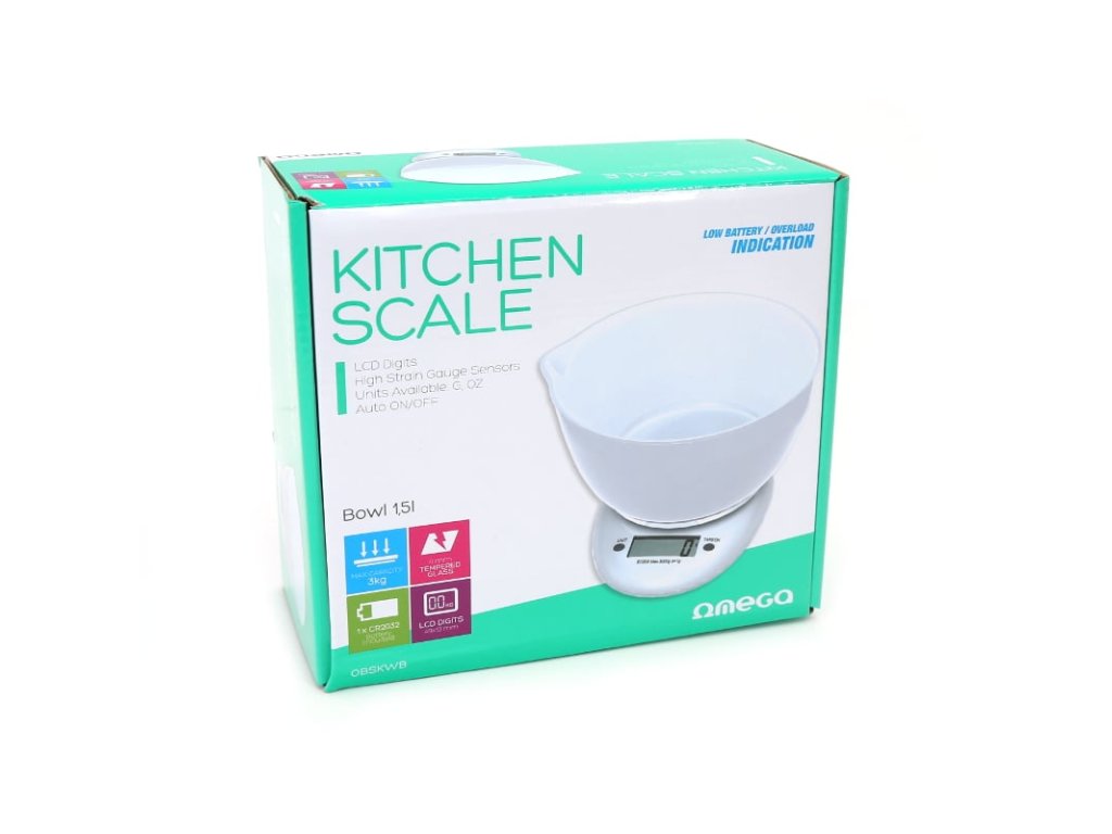 Omega Digitální kuchyňská váha bílá s mísou (OBSKWB) 3kg