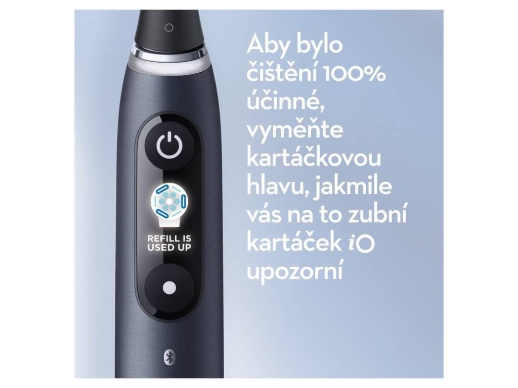 Elektrický zubní kartáček s technologií iO a kulatou hlavou vám pomůže vylepšit stav vašeho chrupu už po týdnu používání.