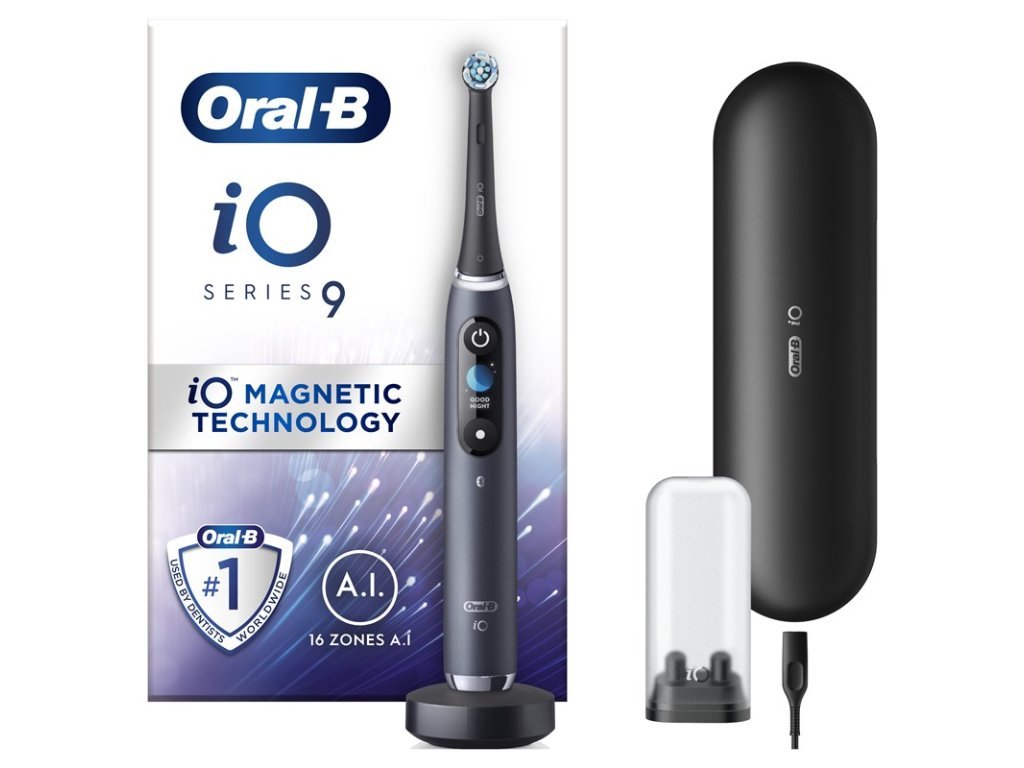 Smart zubní kartáček Oral-B iO9 Series Onyx obdržel 7 režimů čištění, funkci 3D mapování zubů, časovač, nastavitelnou rychlost, senzor tlaku, technologii iO a OLED displej.