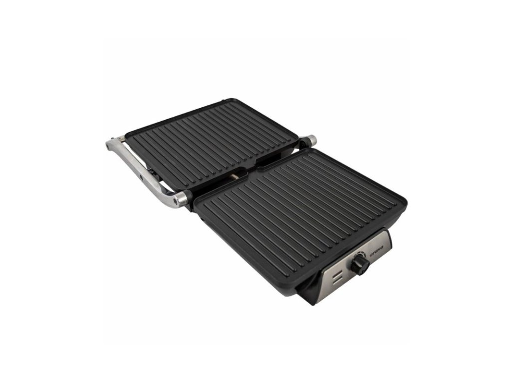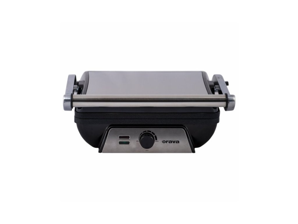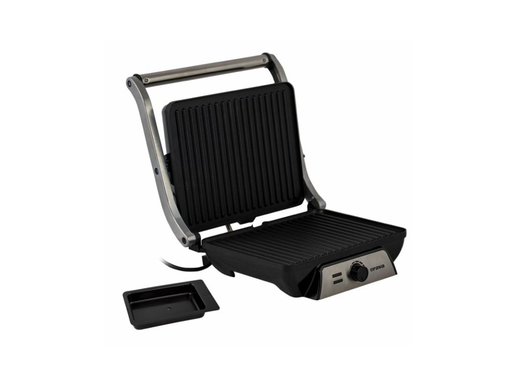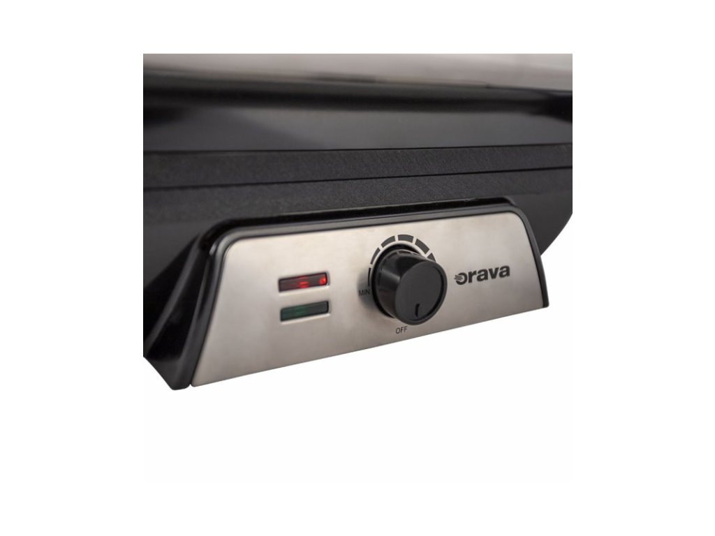 ORAVA Grillchef-4 Elektrický stolní gril, grilovací desky s nepřilnavou vrstvou, plynulá regulace teploty termostatem, tepelně izolovaná rukojeť, funkce otevřeného i kontaktního grilu