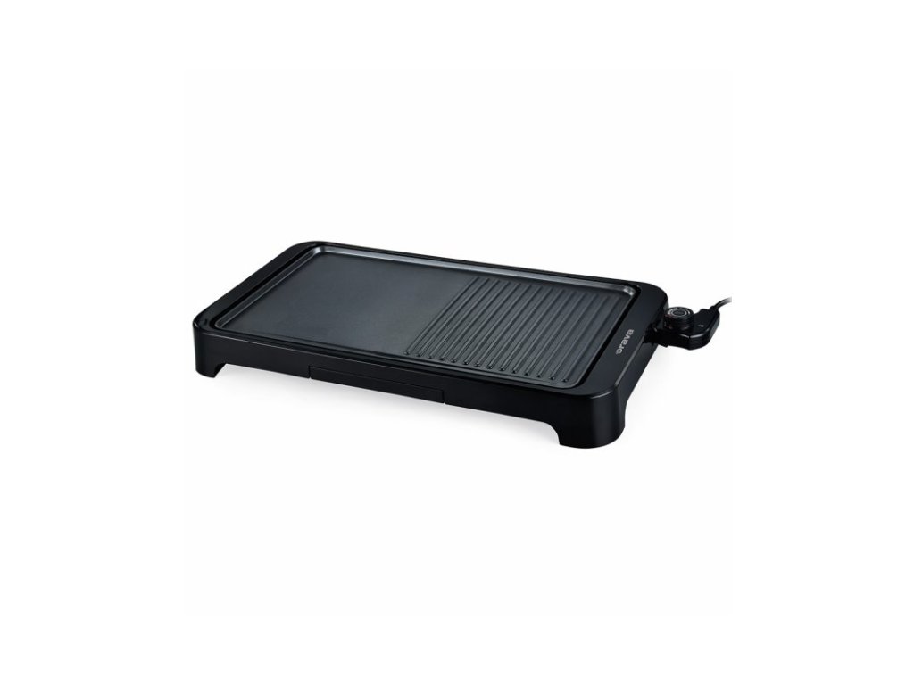 ORAVA Grillchef-5 Elektrický stolní gril, kombinace 2 grilovacích ploch - hladký a žebrovaný povrch, variabilní nastavení teploty 60 až 220 °C, grilovací desky s nepřilnavou vrstvou