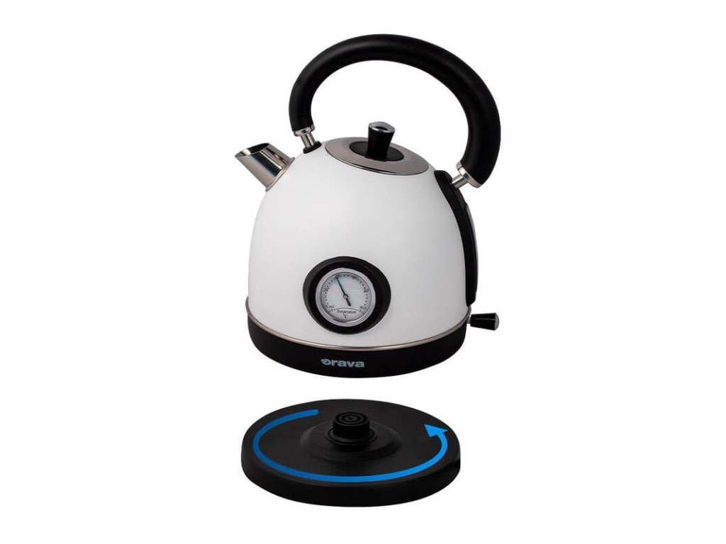 Integrovaný analogový teploměr, který během ohřívání zobrazuje aktuální teplotu vody.