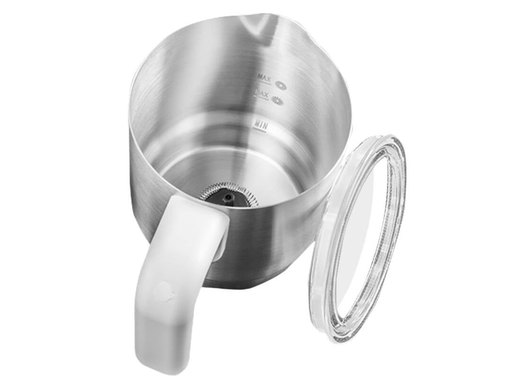 Napěňovač připraví 250 ml šlehaného mléka nebo 350 ml ohřátého mléka během jedné přípravy. Přepínač má světelnou signalizaci. Topná spirála je skrytá a dno je rovné. Průhledný kryt dovoluje vizuální kontrolu a brání vylití. Napájení je pro 220–240 V s frekvencí 50/60 Hz. Po ukončení šlehání se automaticky aktivuje pohotovostní režim.
