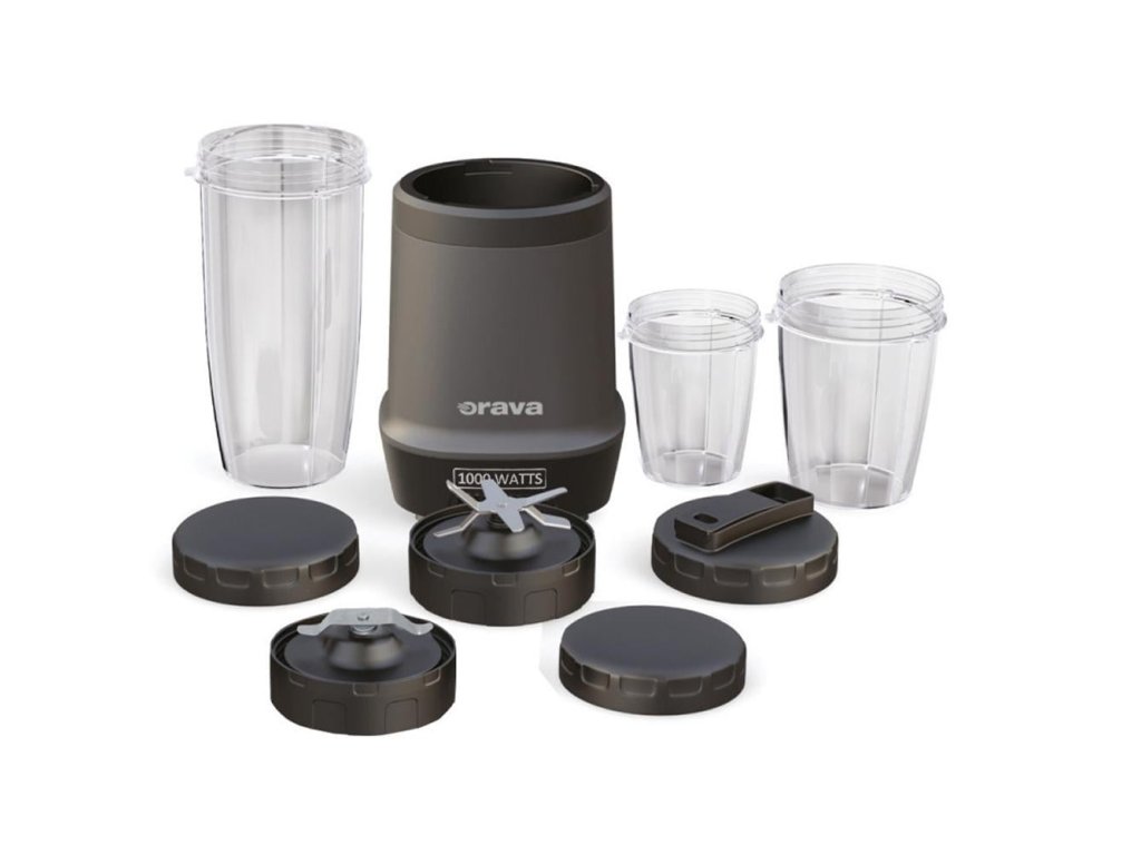 smoothie mixér • příkon 1 000 W • výkon 20 000 ot. / min • hlučnost 90 dB • objem 0,7 l • drcení ledu • 5 ks mixovacích nádob 900, 500, 300 ml • 2 druhy nerezových nožů pro mletí a mixování
