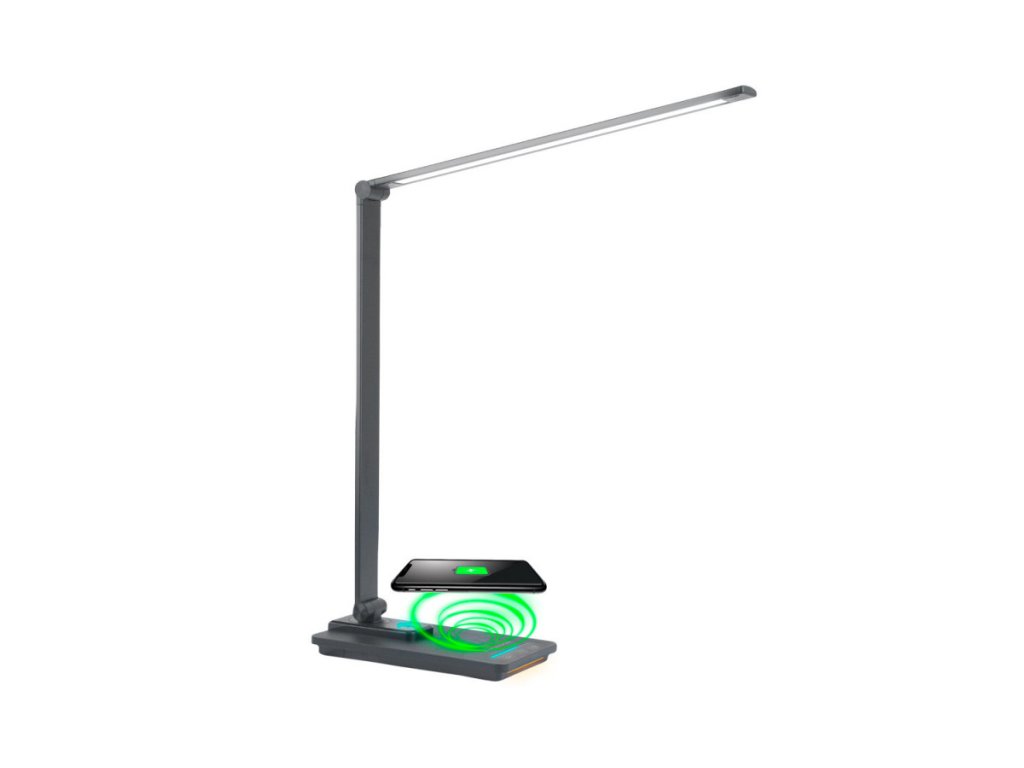stolní LED lampa s bezdrátovou nabíječkou • USB konektor pro nabíjení (5V, 2,1A) • 3 režimy světla • nastavitelné rameno • životnost až 30 000 hodin