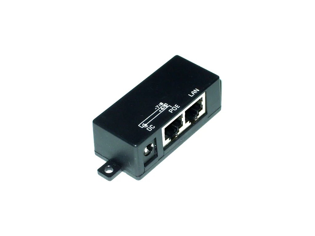 Univerzální pasivní POE injektor pro vzdálené napájení aktivních prvků s integrovaným extraktorem po UTP kabeláži.