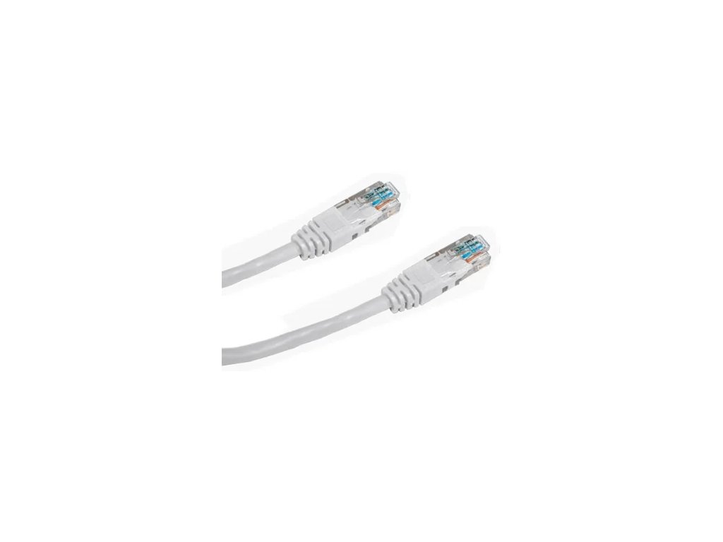 Patch kabel UTP lanko cat.5e se dvěma konektory RJ45, pro propojování počítačových sítí (např. pro spojení PC s datovou zásuvkou, patch panelu s aktivními prvky)