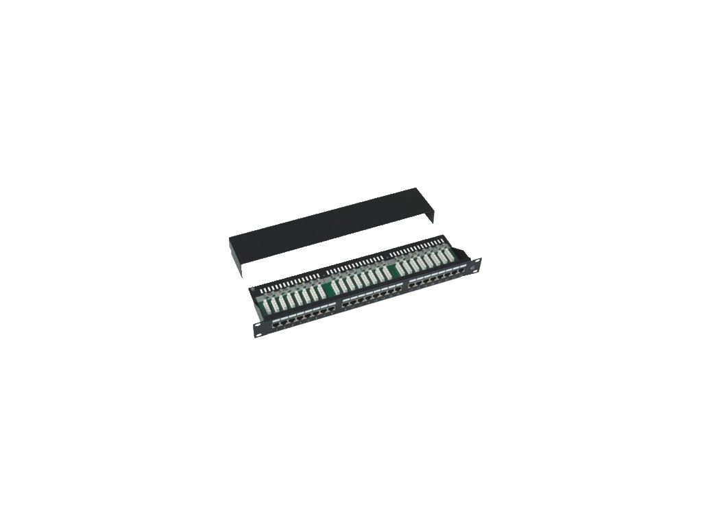 - 19" Stíněný patch panel určený pro montáž do 19" datových rozvaděčů. - 3 x 8 pozic zářezového pole; - 24 stíněných RJ45 portů; - výška 1U; - cat. 5e; - horní zářez; - barva černá;