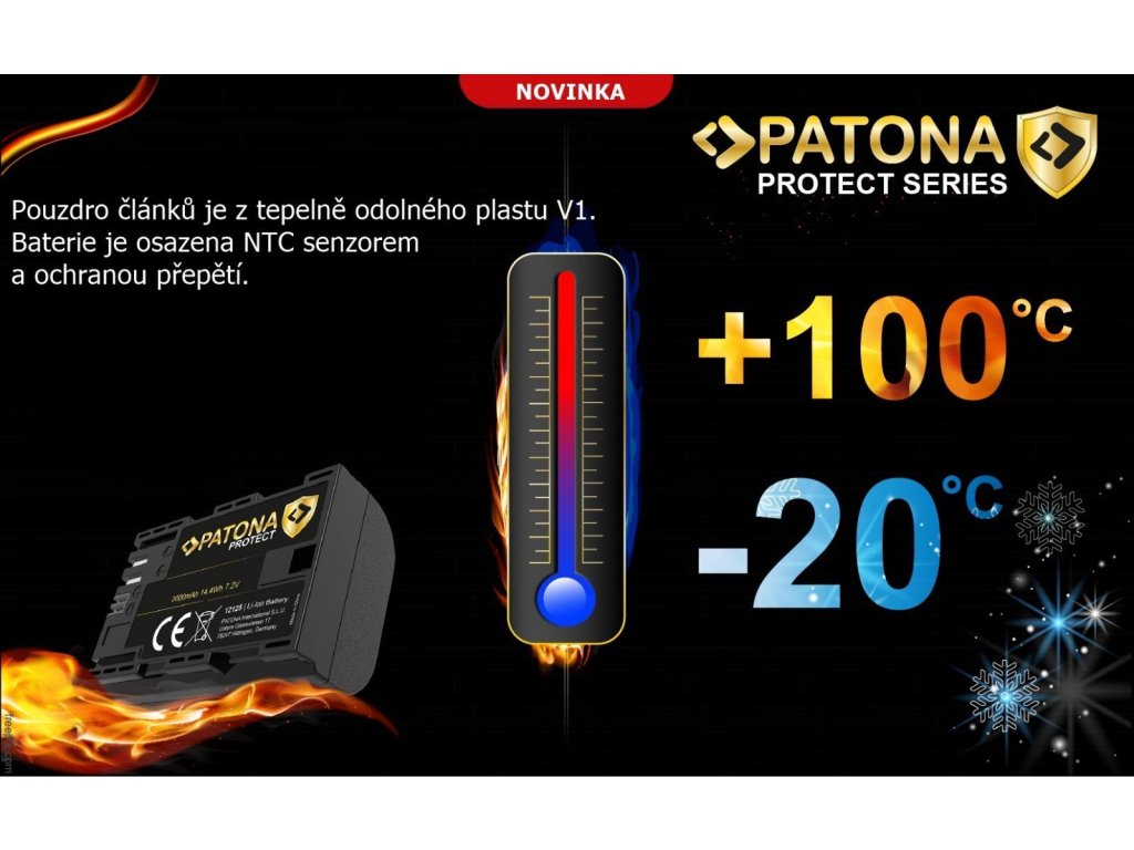 Kompatibilní baterie série Protect pro fotoaparáty Sony. Baterie se vyznačují vysokou kvalitou, mají integrovanou ochranu proti přetížení, přebití a přehřívání. Série Protect navíc disponuje ohnivzdorným a extrémně tepelně odolným krytem, který byl vyvinut speciálně pro nepřetržité používání při teplotách -20 až +90 °C.
