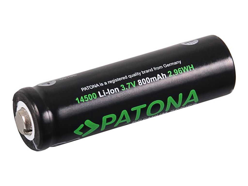Baterie PATONA 14500 s kapacitou 800 mAh a výdrží až 400 nabíjecích cyklů.